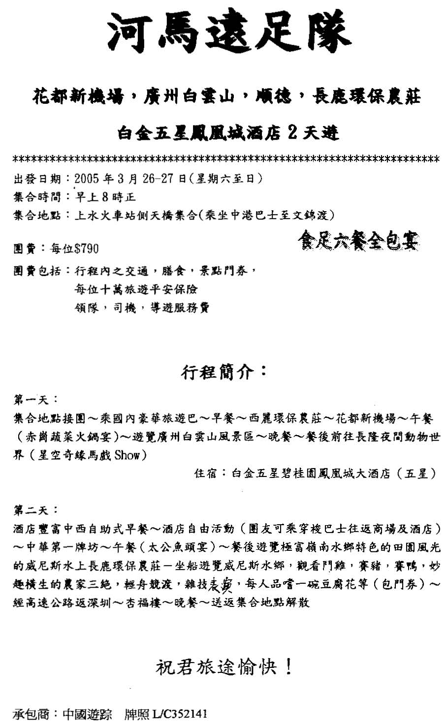 1. 本隊並非正式的會社或旅行團,全屬結伴同行的一群朋友,以上活動,歡迎自由參加。參加者須自行承擔個人一切保險責任,所有行程免費,交通費自付。