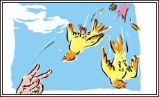 | kill two birds with one stone A : 插翼難飛 B : 沉魚落雁 C : 一箭雙雕 |