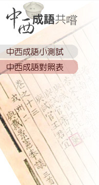 成語是語言中的精華,它不僅在中國語言中佔重要地位,即使在其他語言中, 也是不可或缺的部分。我們在學習中國成語的同時,若能參照其他語言中的成語,不但可增進知識、提高語文能力, 還能透過對照不同民族的成語,發現一些有趣的文化現象哩! |